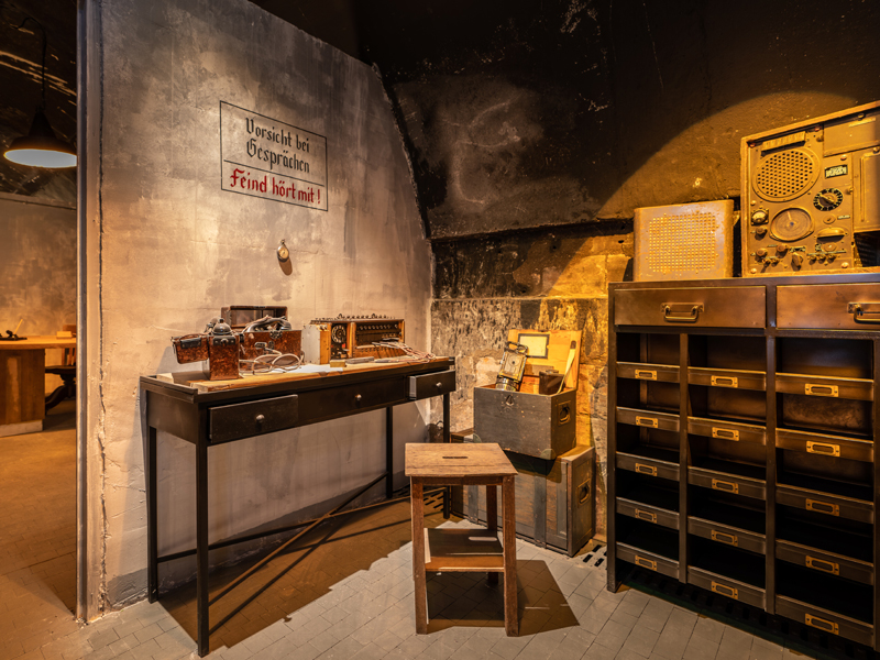 Le site retenu est une ancienne carrière de pierre située au Nord-Ouest de Caen qui servait de champ de tir aux militaires français avant 1939. Un tunnel de 70 mètres de longueur est creusé dans la roche calcaire par des ouvriers de l’Organisation Todt. Le front de taille tournant le dos à la mer et l’épaisseur de la roche protègent l’édifice des bombardements. Les travaux sont achevés à la fin de l’année 1943. Le souterrain, qui abrite un centre de transmission, est entièrement ventilé et dispose d’un groupe électrogène et d’une citerne à eau. Les trois accès en chicane sont défendus par des meurtrières.